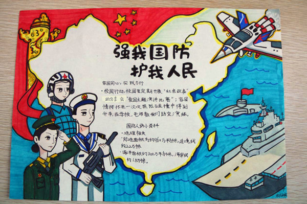 为进一步丰富国防教育形式,激发学生参与热情,我校开展国防教育手抄报制作活动。同学们积极搜集国防知识、英雄事迹、强军故事等内容,精心设计版面、认真绘画书写,用色彩与文字描绘祖国强大、人民安康的美好图景。一张张主题鲜明、内容丰富的手抄报,不仅展现了同学们的动手能力与创造力,更让国防意识、爱国情怀在一笔一画中深深扎根,使同学们在实践中加深对国防事业的理解与认同。